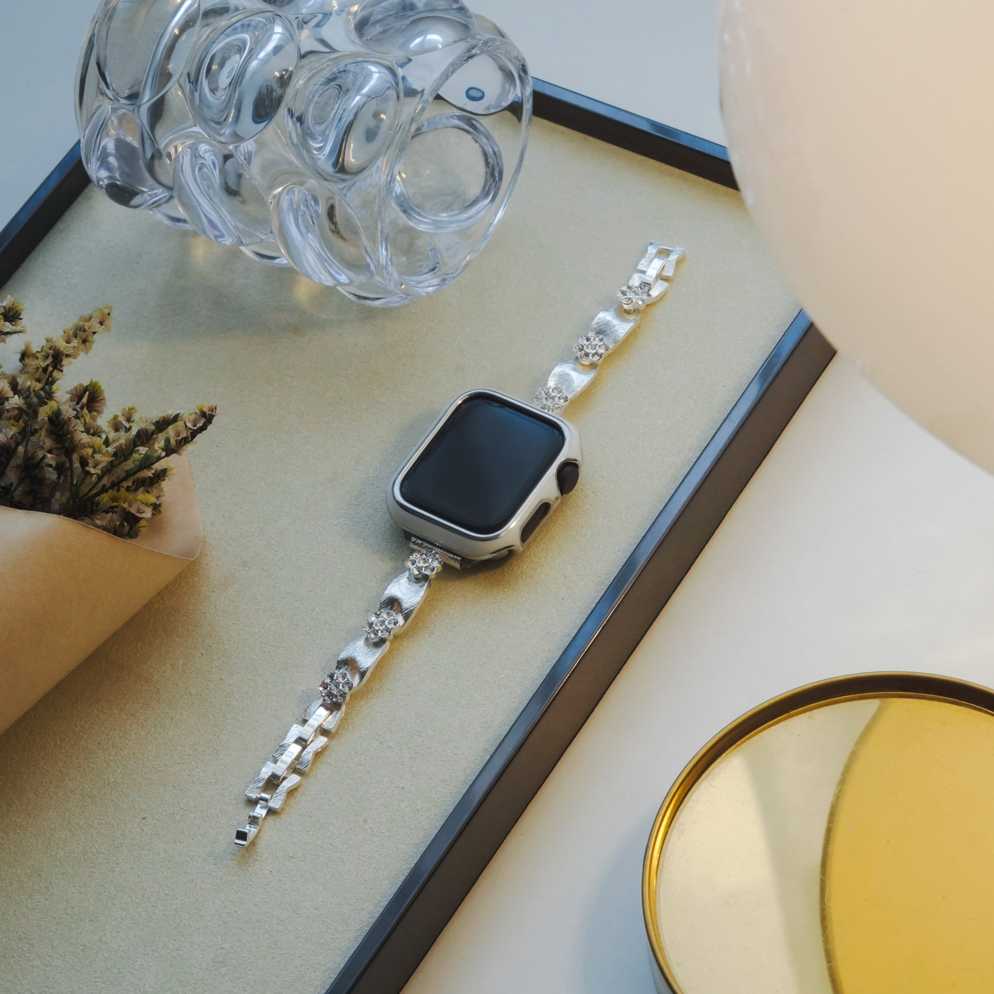 Daisy-Style Elegant Diamond-Inlaid Silver Apple Watch
