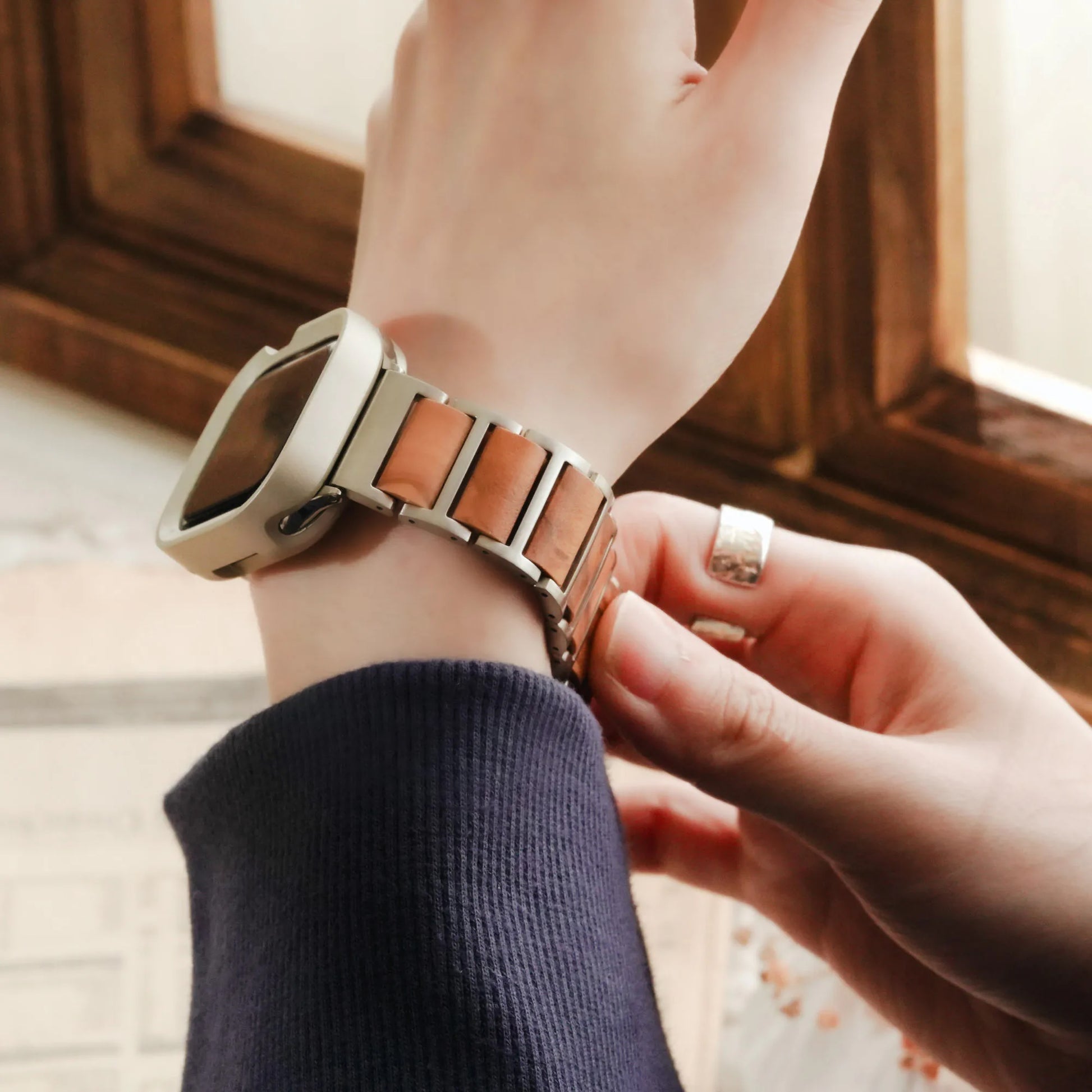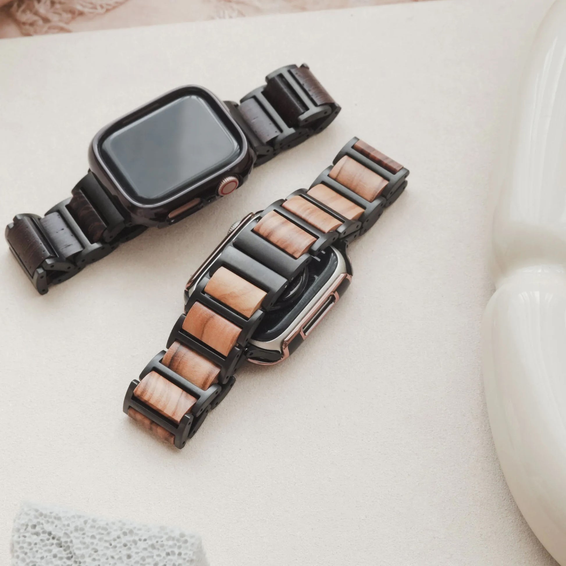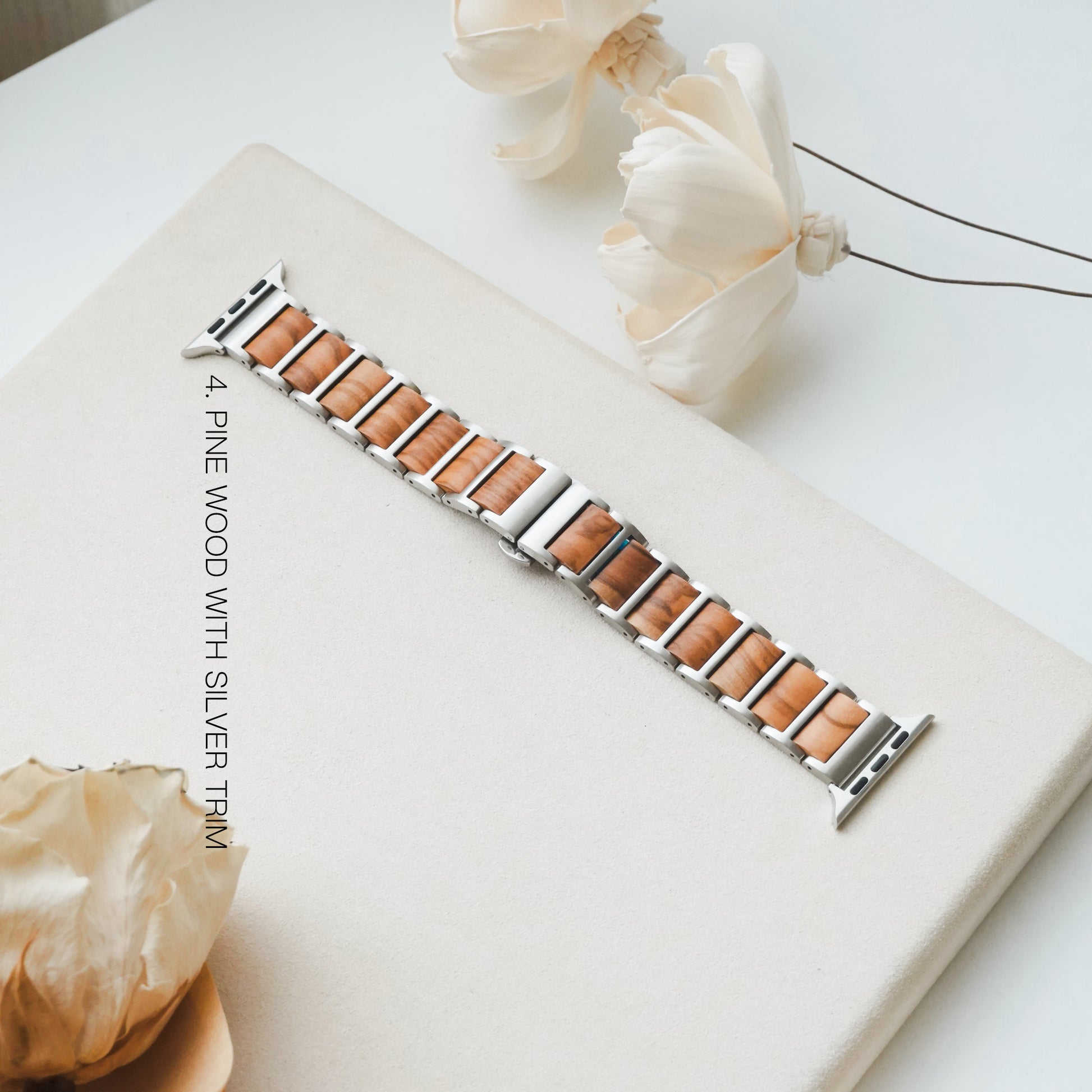Wood Grain Checkered Pattern with Metal Butterfly Clasp Apple Watch strap