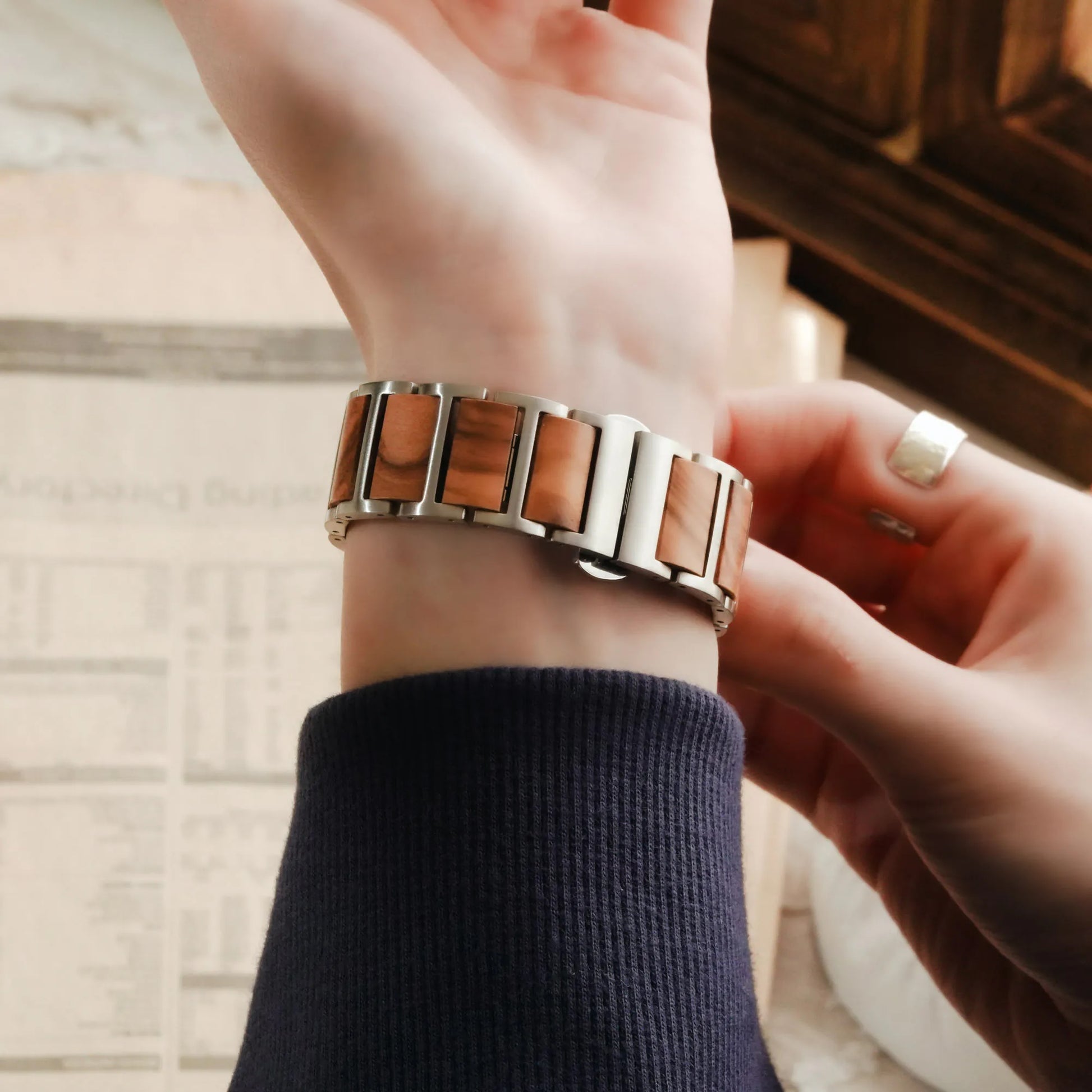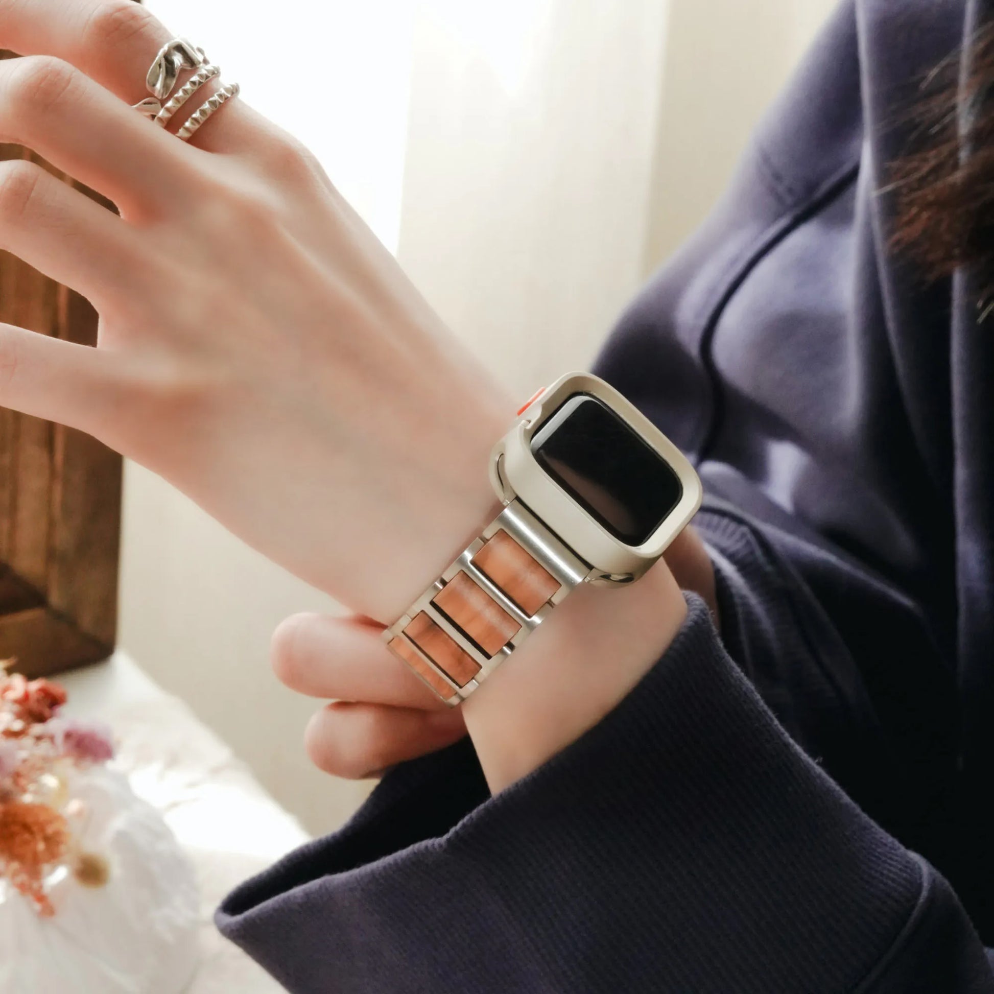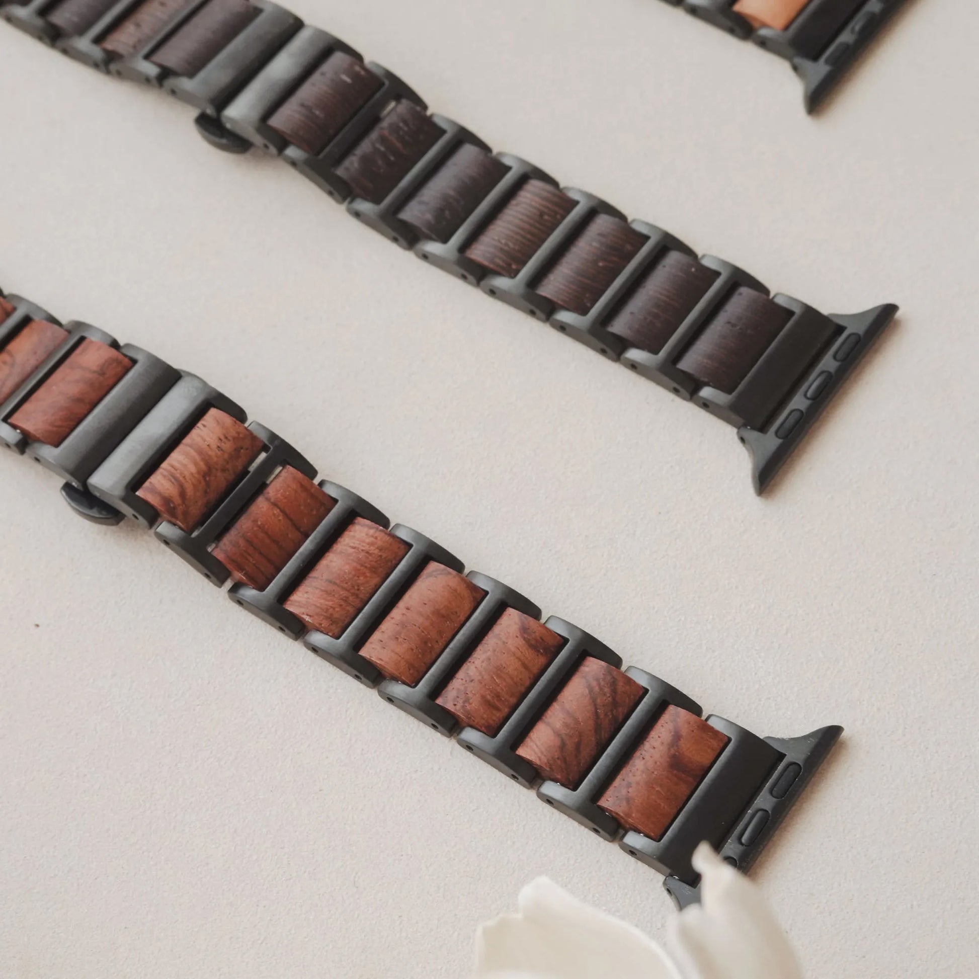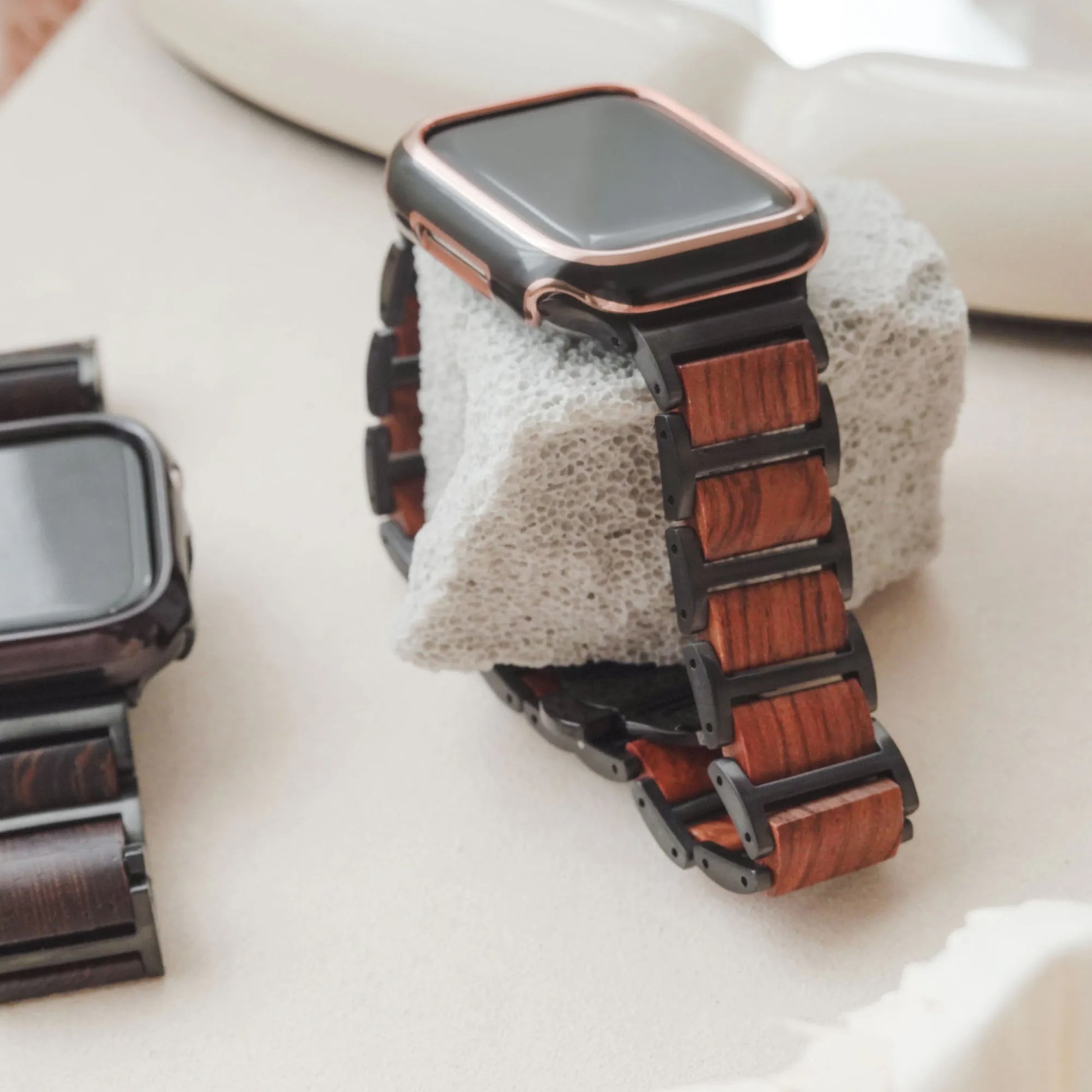 Wood Grain Checkered Pattern with Metal Butterfly Clasp Apple Watch strap