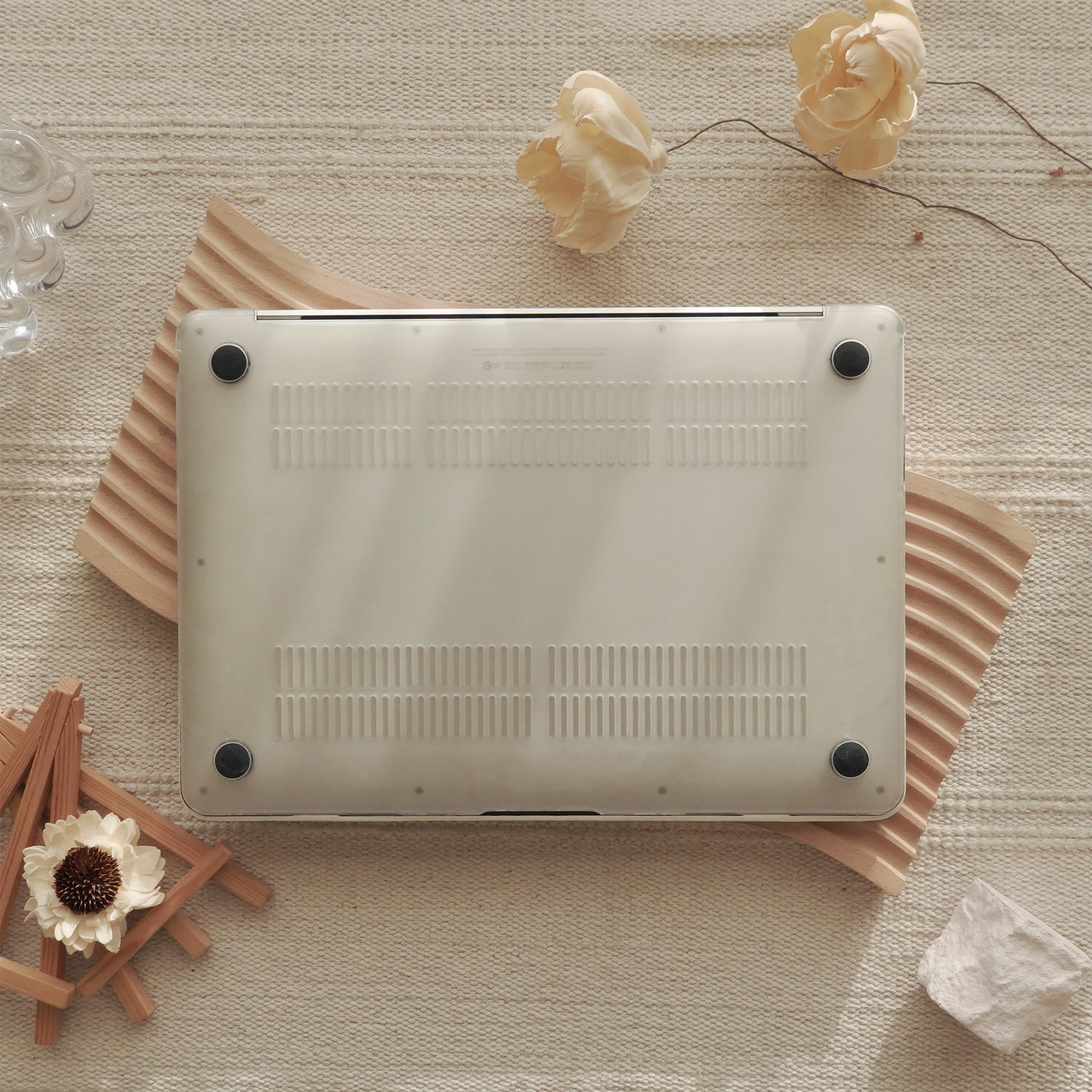 >Bottom part of the case has little rubber feet so that your MacBook won’t not slip.