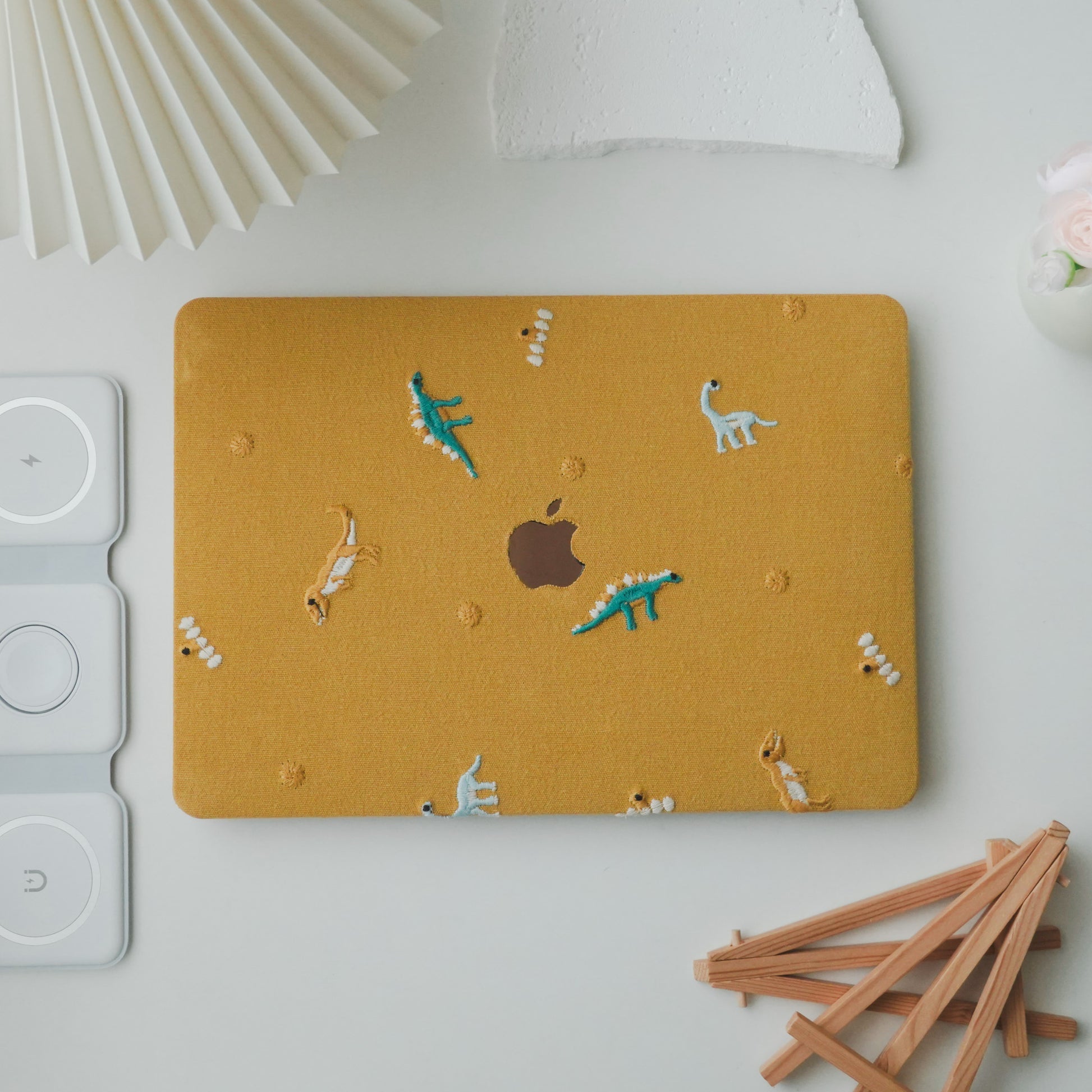 Embroidery Series ♾ Embroidered Yellow – Dinosaur Collection – Premium Stitching MacBook Case