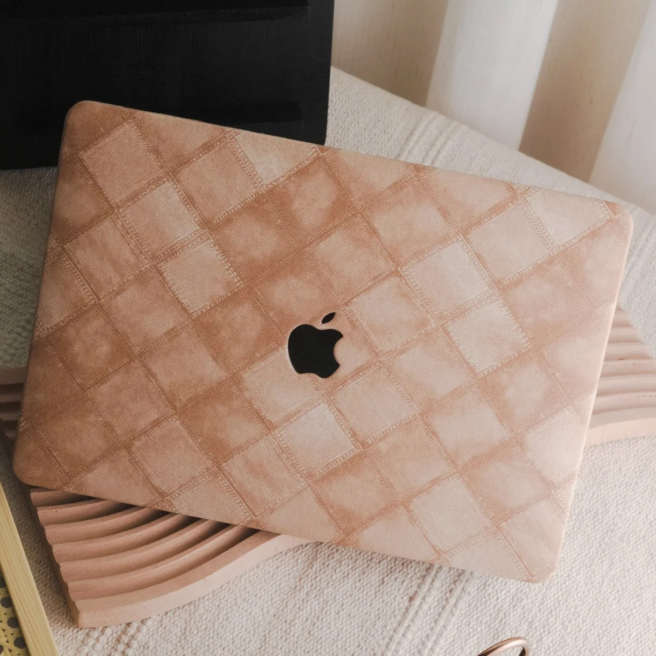 Light Brown Fabric Brown Plaid Denim Macbook Case