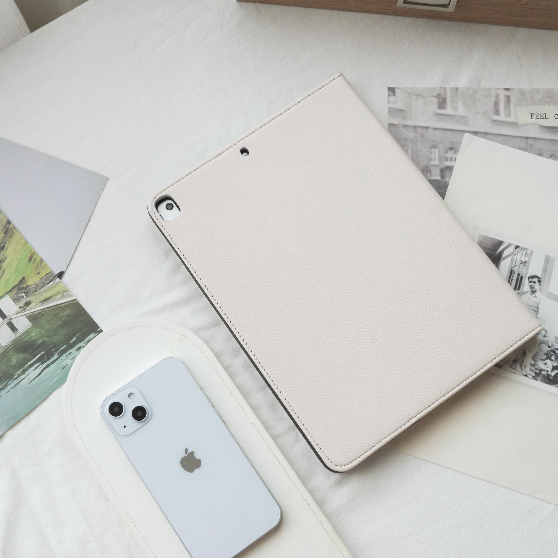 Leather Series ♾ White Lychee Skin iPad Protective Case