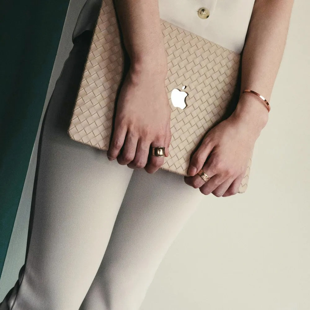 Thin Antique milk tea Weave Texture Leather Macbook Case