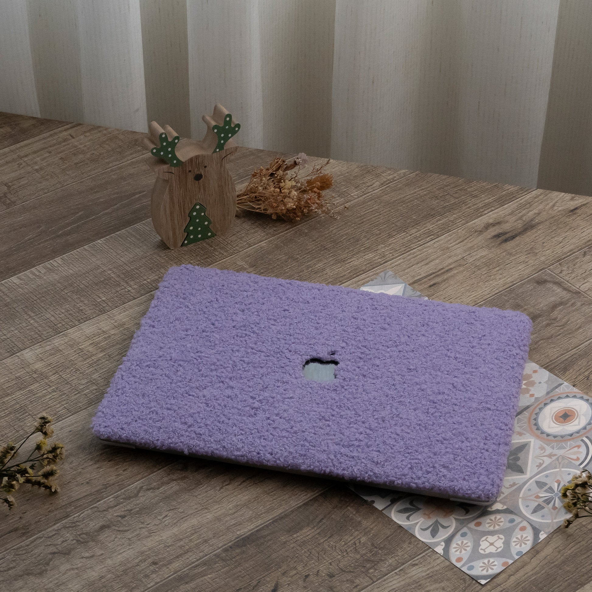 Teddy Fleece, Bellflower Purple Textured Leather Mac Case