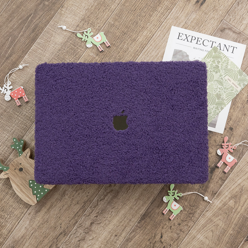 Teddy Fleece, Deep Purple Textured Leather Mac Case