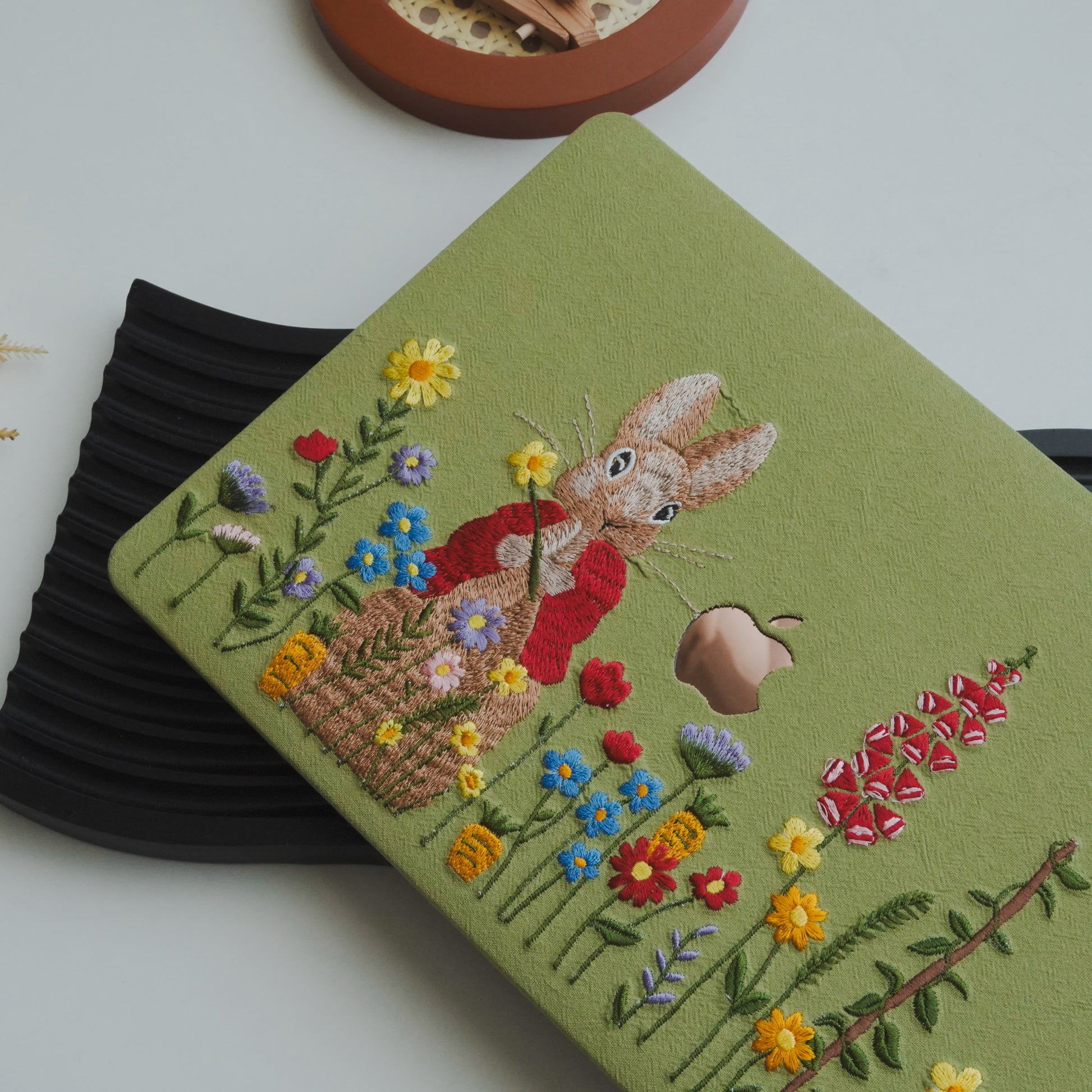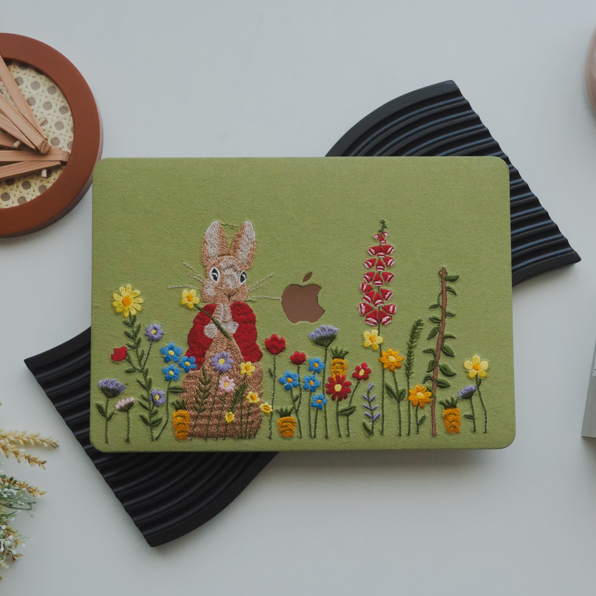This is us Green Hand-drawn Red-clothed Bunny ♾ Textured Stitching MacBook Case