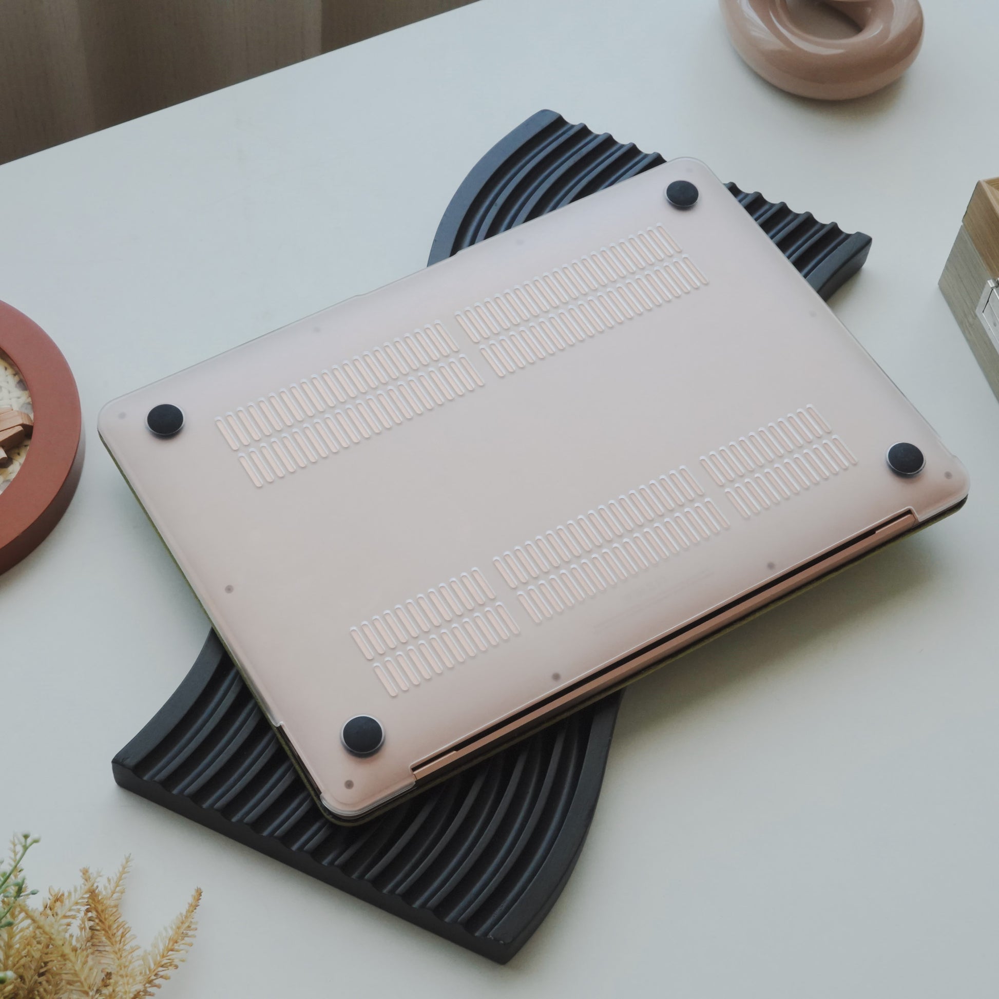 >Bottom part of the case has little rubber feet so that your MacBook won’t not slip.