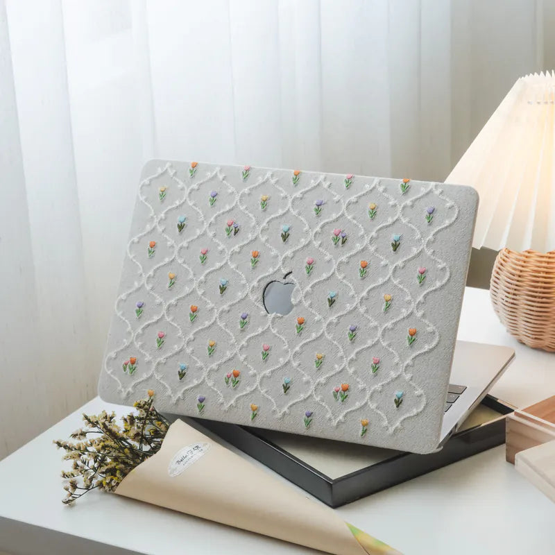 This is us Plaid Floral ♾ Textured Stitching Plain White Mac Case